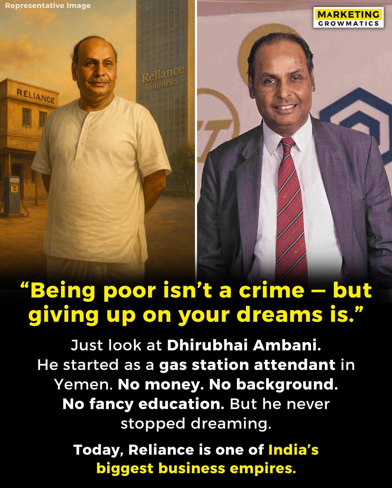 Dhirubhai himself started small — working at a gas station in Yemen before returning to India and building Reliance Industries, one of the world’s biggest business empires.
