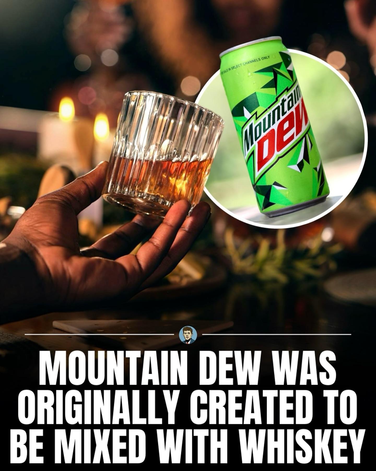 Mountain Dew was first developed in the 1940s by Tennessee beverage bottlers Barney and Ally Hartman as a whiskey mixer. Its citrusy, lemon-lime flavor was crafted to pair well with bourbon, and the name “Mountain Dew” was a nod to the slang term for homemade moonshine. Originally a regional drink meant to complement spirits, it eventually transformed into the bold, neon-green soda recognized around the world today!