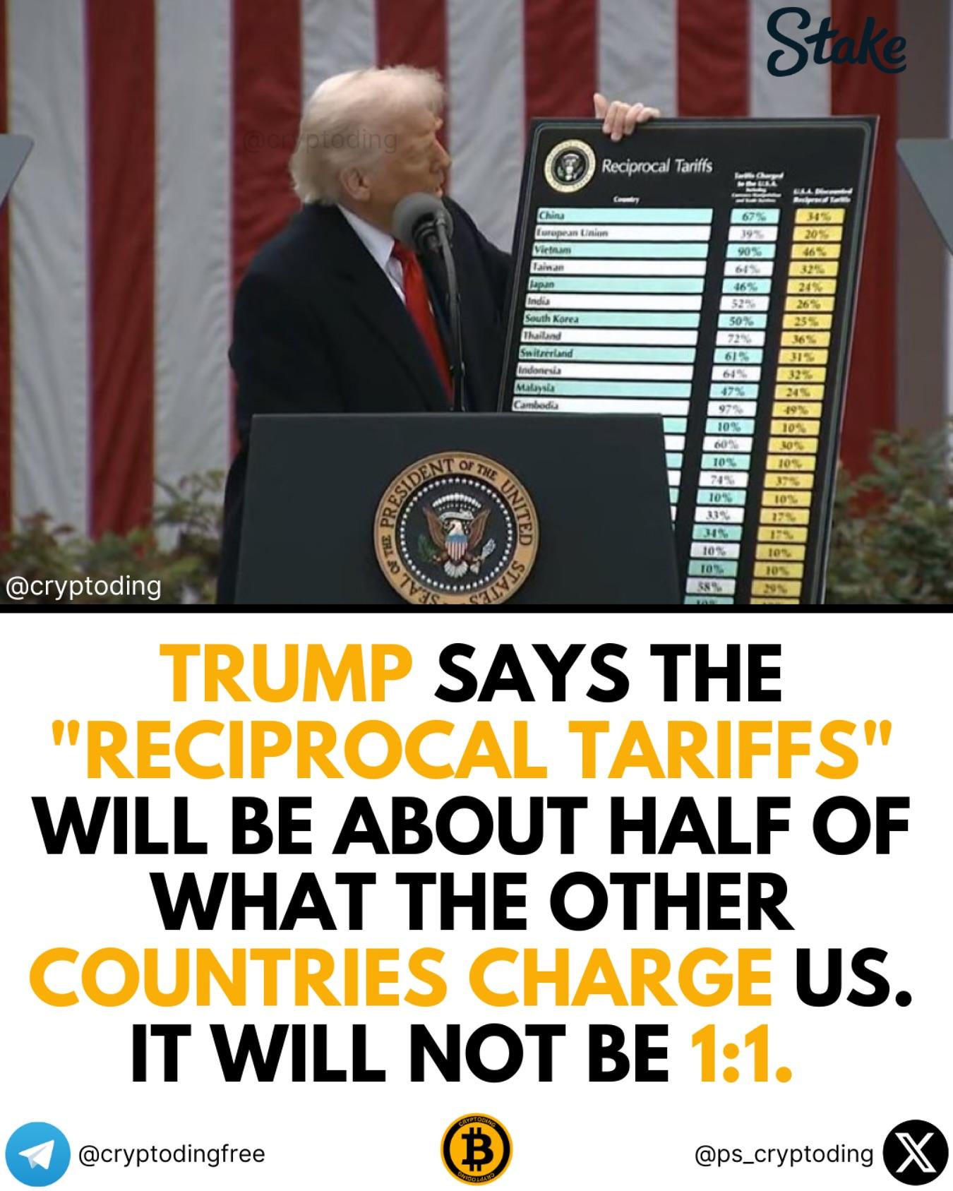 • Trump says the “reciprocal tariffs” will be about half of what the other countries charge us. It will not be 1:1. Every country gets a different tariff.