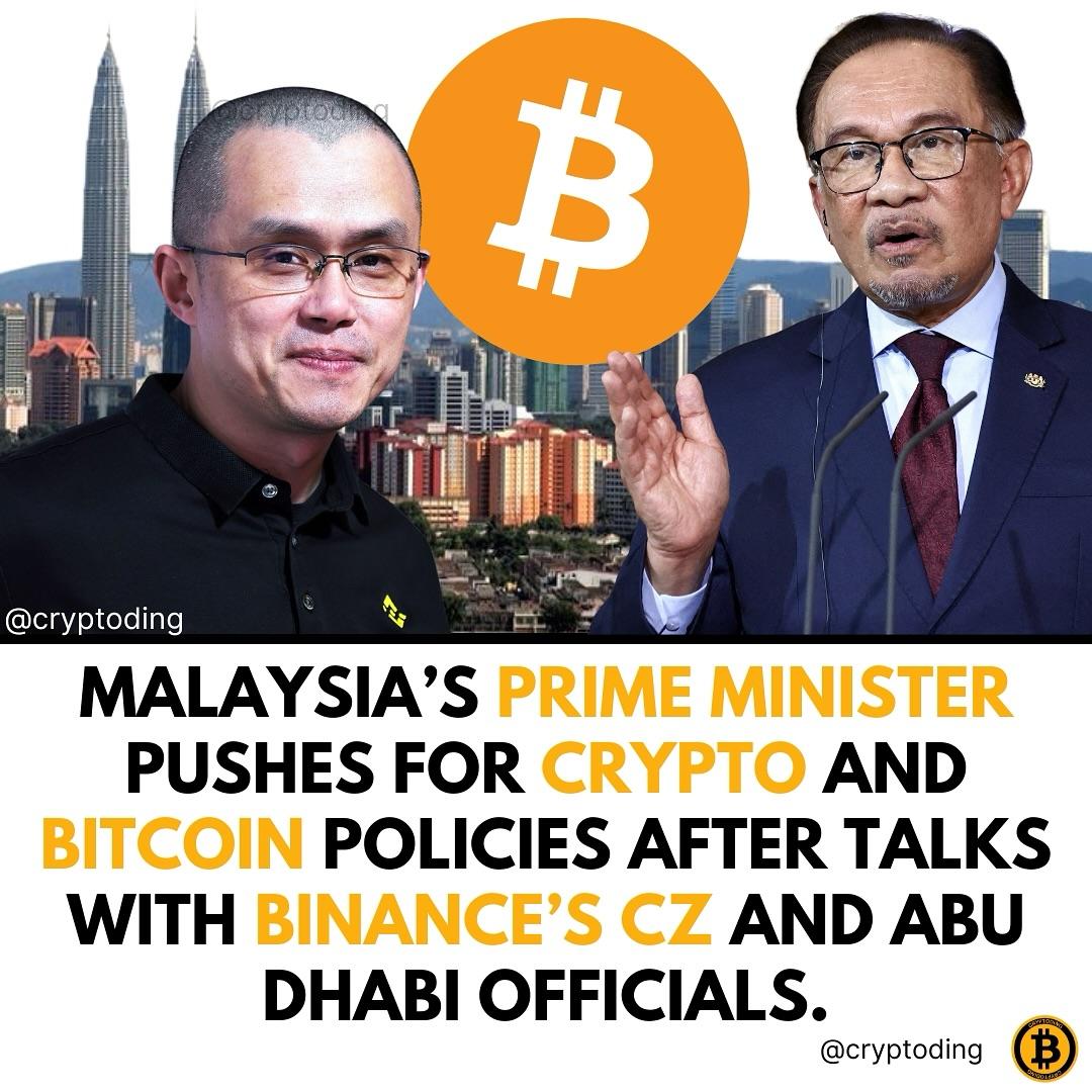 • Malaysia’s Prime Minister is making waves in the crypto world! After key discussions with Binance CEO CZ and Abu Dhabi officials, he’s now pushing for policies that support Bitcoin and cryptocurrency. This bold move could position Malaysia as a leader in the global crypto industry. Stay tuned for updates!