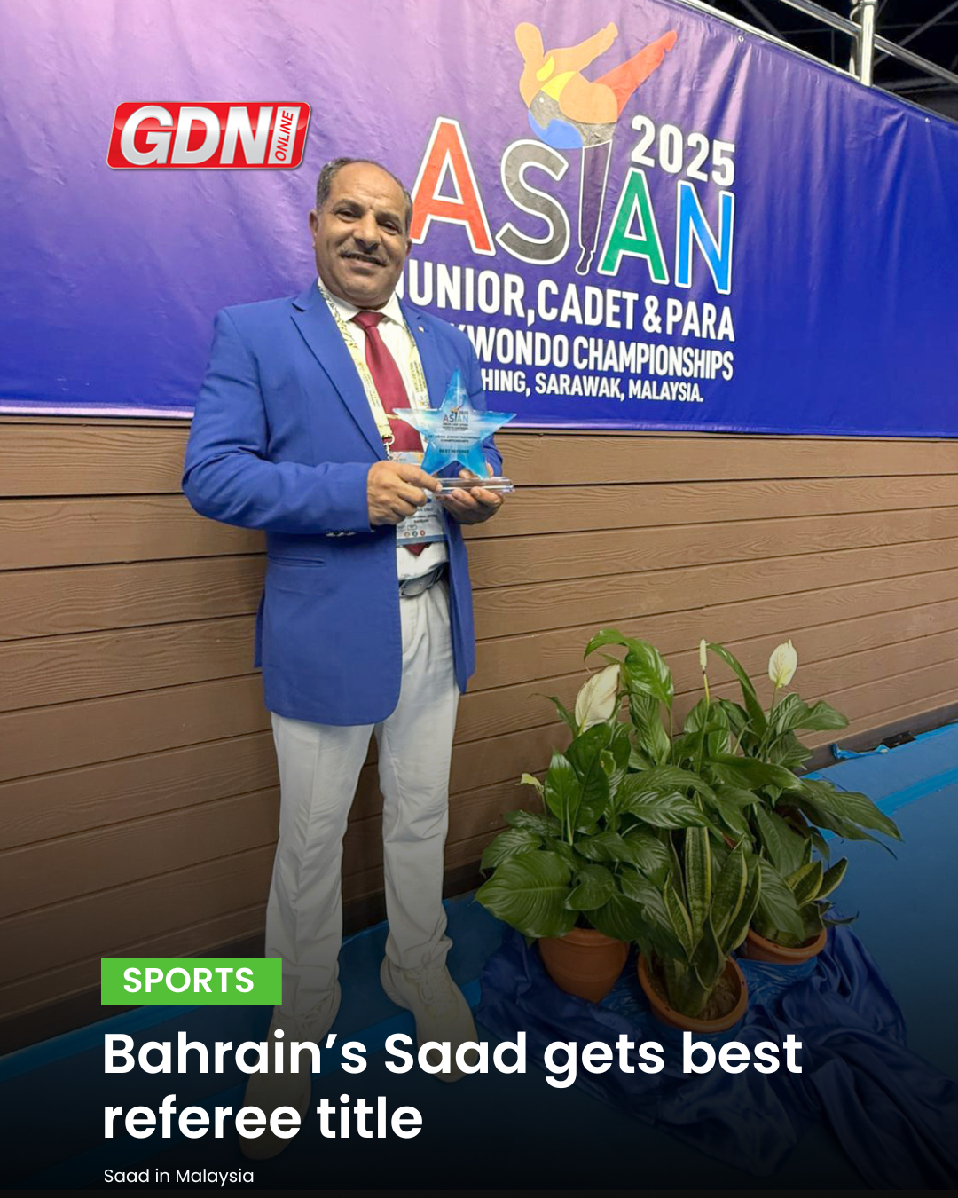 Bahrain Taekwondo Federation referees committee chairman and international referee Hassan Saad Saad has been awarded the title of best referee during his participation in officiating at the Asian Junior Taekwondo Championships, held in Malaysia this week, featuring some of the most promising talents from across the continent. This recognition is a well-deserved tribute to Saad’s distinguished performance throughout the championship, reflecting his high level of proficiency in refereeing, as well as his adherence to the international standards set by both the Asian and world taekwondo federations. The Bahraini international referee continues to represent the kingdom in continental events, currently officiating at the Asian Para Poomsae Championships, taking place in the same host country following the conclusion of the junior championships. For more details, read today's GDN or visit our website www.gdnonline.com #gdnonline #bahrain #sports #taekwondo #referee